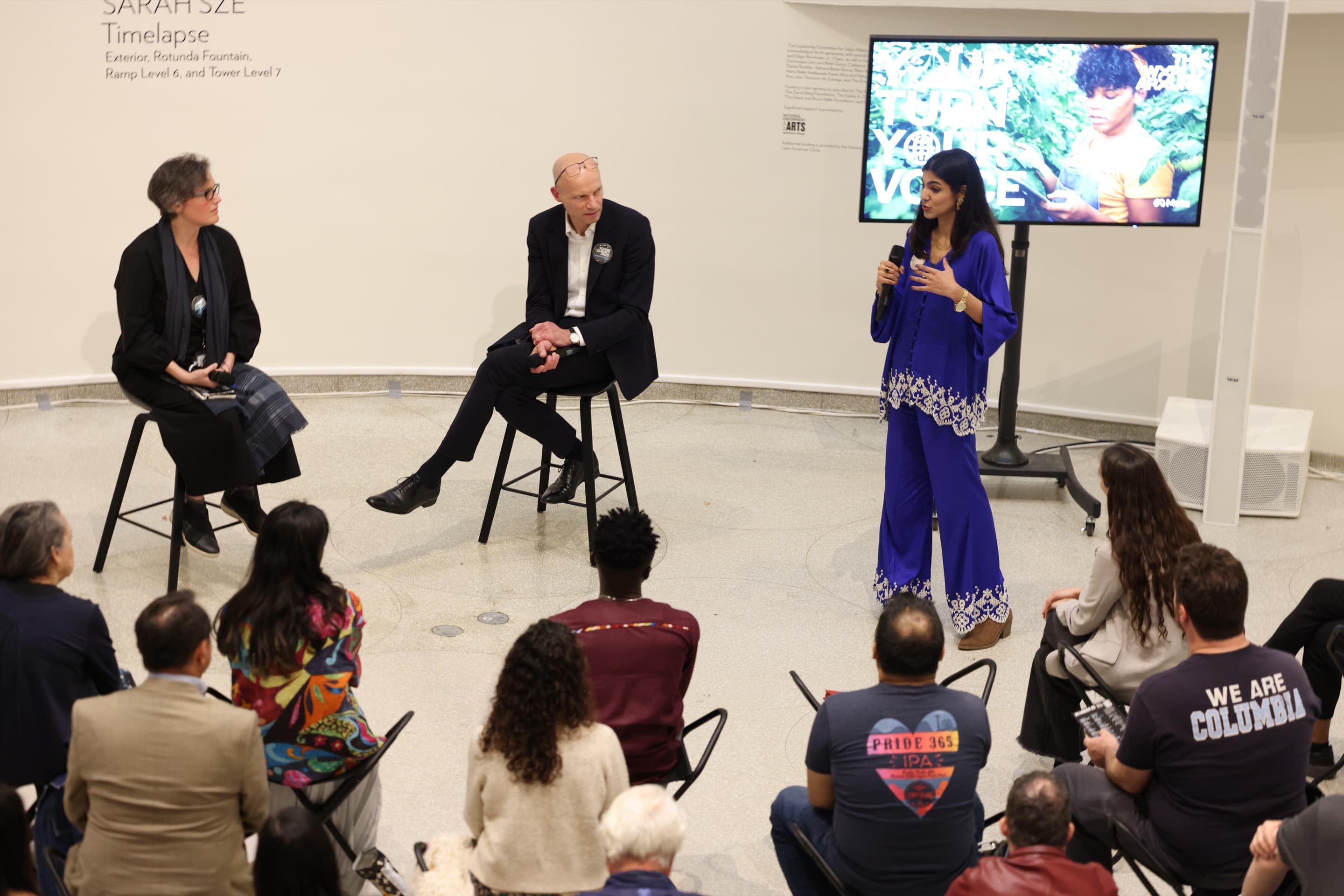 On April 21, 2023, The World Around and the Solomon R. Guggenheim Museum co-hosted Late Shift × The Young Climate Prize, an evening celebrating the inaugural cohort of visionary under-25 climate leaders. Against the backdrop of the museum’s iconic rotunda, visitors explored short films by the prize finalists, joined hands-on sustainable art-making activities, and connected directly with young innovators tackling the climate crisis across disciplines and geographies. The program’s centerpiece was a live conversation between Cyra Levenson, Deputy Director of Education and Public Engagement at the Guggenheim; Henk Ovink, Special Envoy for International Water Affairs for the Kingdom of the Netherlands; Namra Khalid, architect and climate activist; and the Young Climate Prize winners themselves, offering insight into their transformative projects. Late Shift invited the public to experience climate action as both urgent and imaginative—showcasing a new generation of designers, thinkers, and activists shaping a sustainable future.